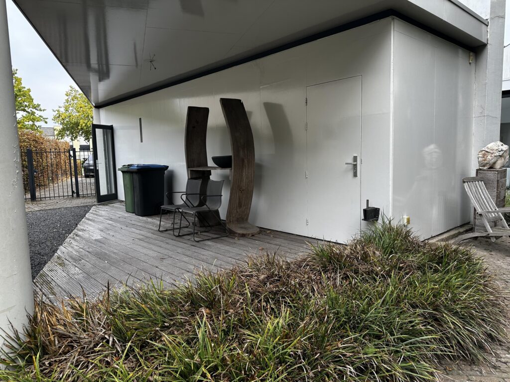Dit opvallende bedrijfspand met zijn kenmerkende ronde gevel is gebouwd in 1991 als atelier- en woonruimte. Sinds 2016 is het in gebruik als kantoor- en praktijkruimte.